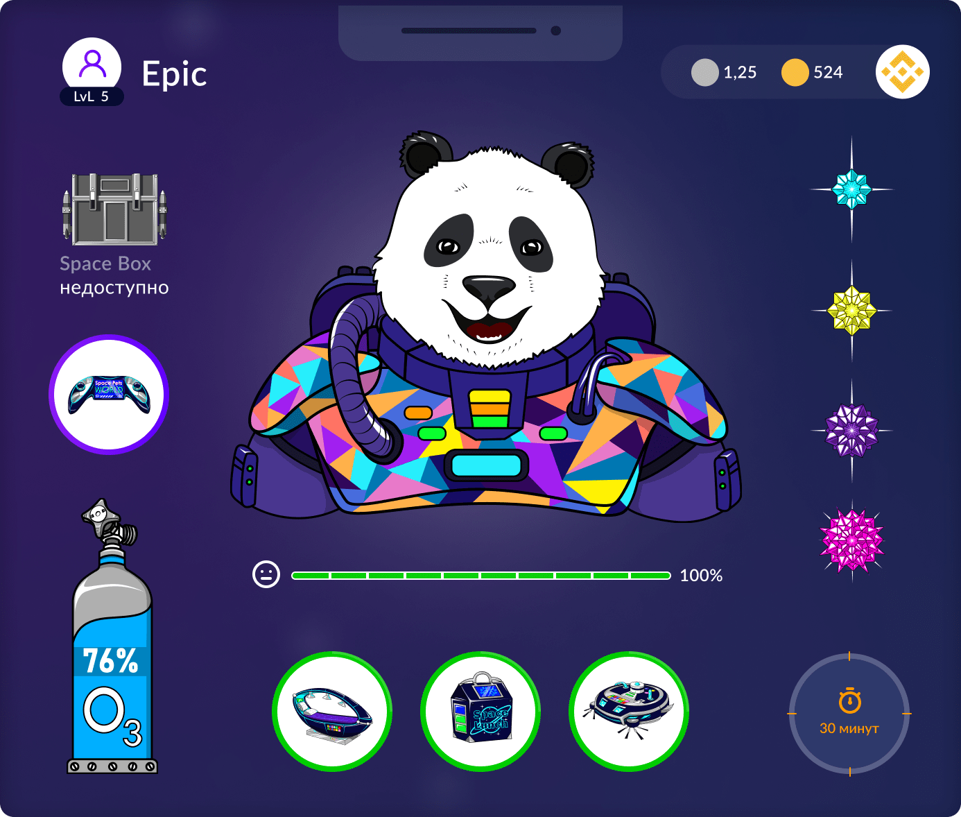 Выполняя все ежедневные действия по уходу и заботе над питомцем, у вас есть вероятность получить Space Box